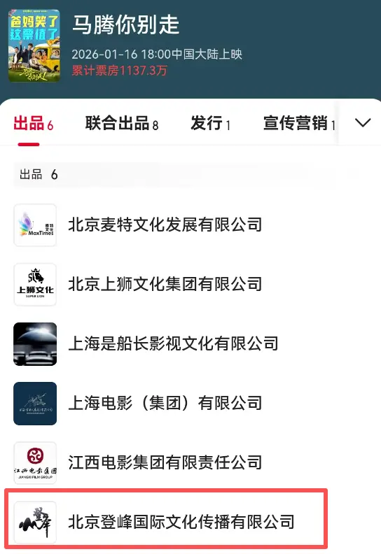 而在《马腾你别走》的出品方列表中,雷同看到了吴京登峰海外公司。