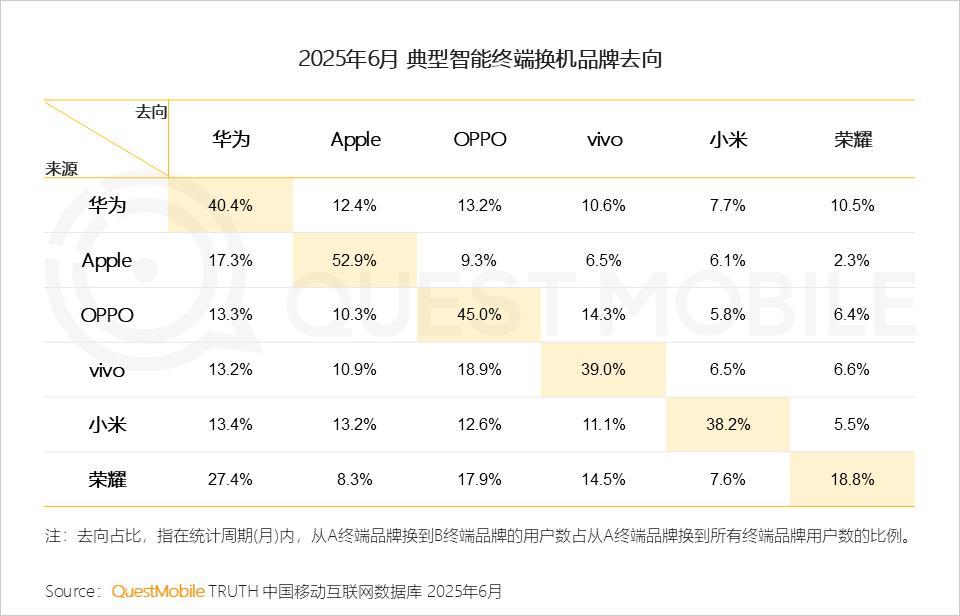 在 QuestMobile 于 2025 年 6 月发布一份统计中不错看到,vivo 用户抓续解救的比例为 39%,低于华为、苹果和 OPPO,并不是一个很高的比例。在发生影响用户体验的风云后,这一数据有可能进一步缩短。